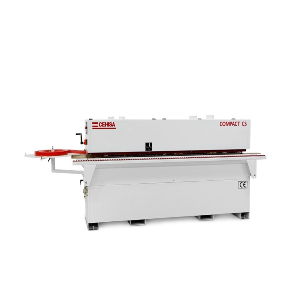 - The COMPACT CS edgebander in addition to the implementation of more powerful operating groups, a drag chain speed of 8 m/min, the possibilty to work 3mm thick edgebands, 60mm panels thick and up to 5mm solid wood strips, it adds the corner rounding group disegned to round the 4 corners of the panel edged with 2mm PVC / ABS band on up to 60mm thick panels in order to achieve its complete finishing.