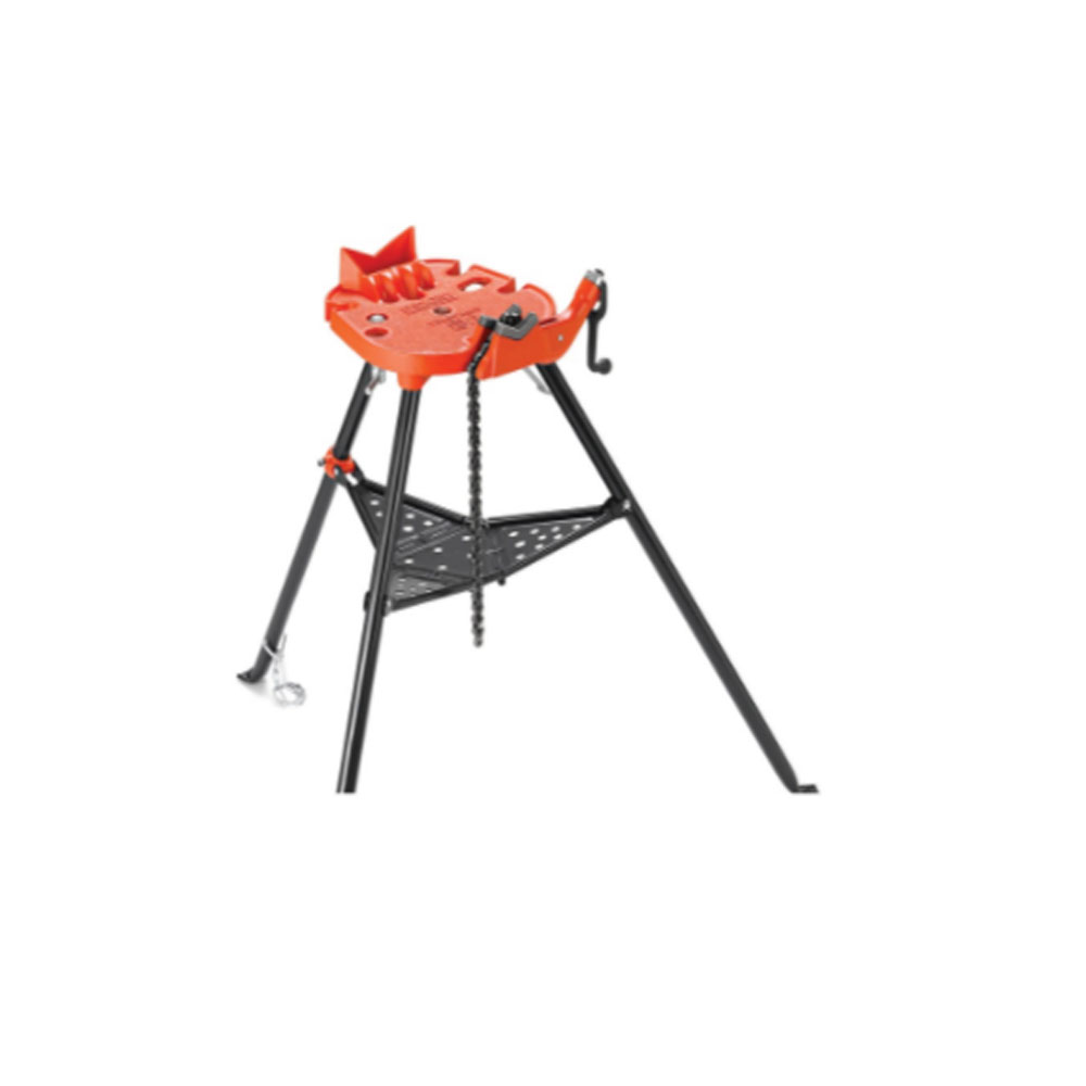 Each TRISTAND pipe vise features integral folding legs for easy transport and setup, tool hangers and a base which overhangs the front legs for clear tool swing.