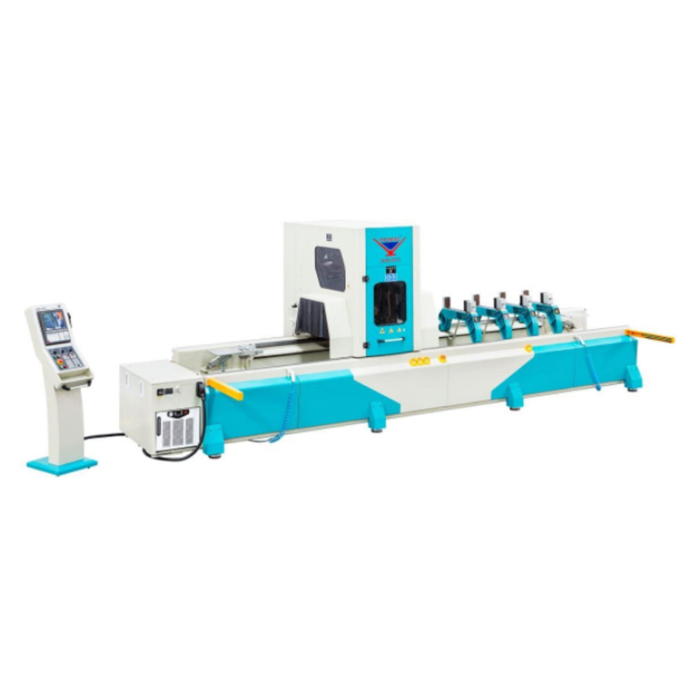 AIM 4410 is 4-axis servo controlled machining center which is designed to perform drilling, grooving, notching, taping, saw milling, etc. on all kinds of aluminum & PVC profiles, light alloys in general and thin walled steel profiles.