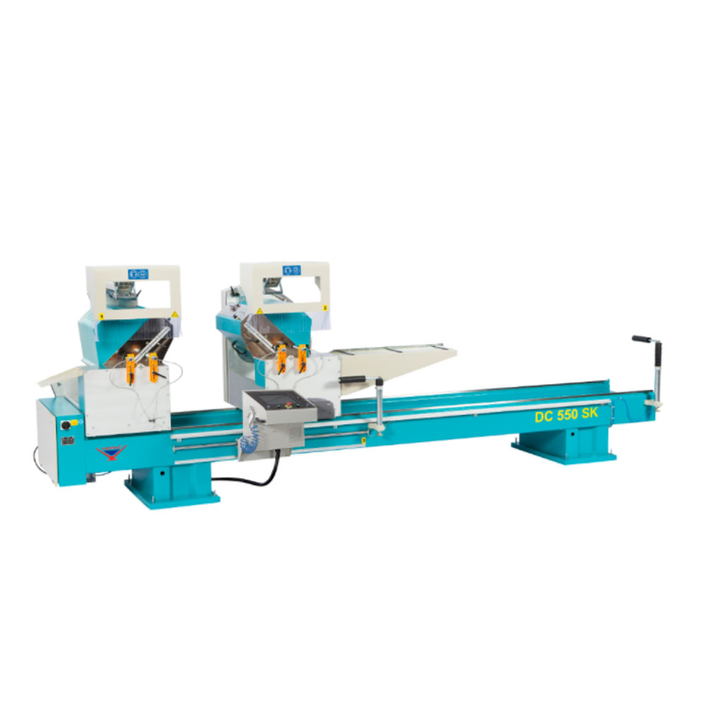 DC 550 SK is a full automatic sawing machine which is designed for the strait or angular cutting operations of large size of profiles made of PVC and aluminum materials by means of double head sawing units equipped with Ø 550 mm of saw blades.