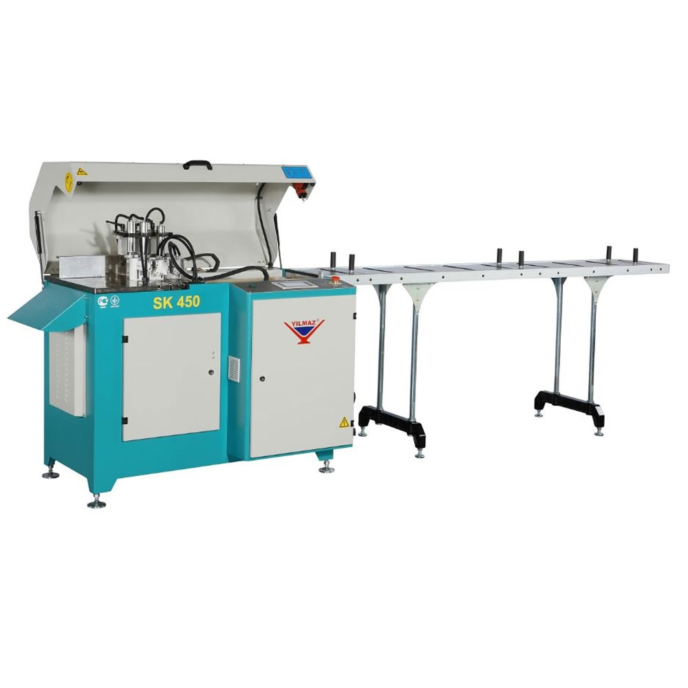 SK 450 is designed for the strait cutting operations of the large size of profiles made of PVC and aluminum by means of Ø450 mm of saw blade at 90°. It is ideal for the serial and precise slicing operations.